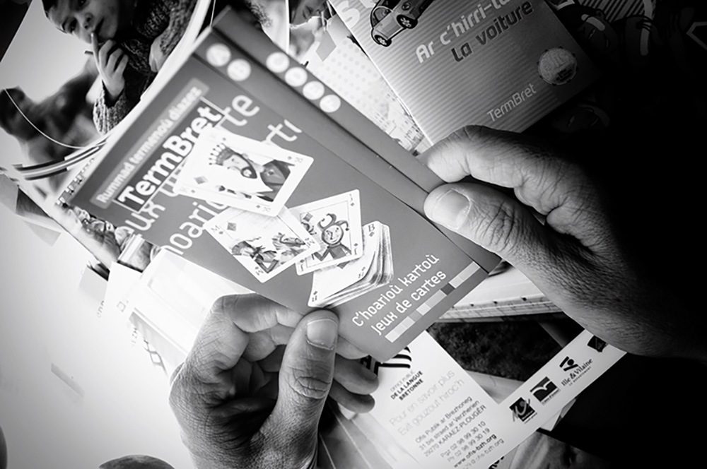 Enlinenn e c’heller ober gant ur geriadur istorel ha niverel brezhoneg. Ouzhpenn da se e c’hell an holl, brezhonegerien pe get, mont e darempred gant ar servij treiñ evit an danvez nann-lennegel : teulioù a bep seurt, kraflevrioù…