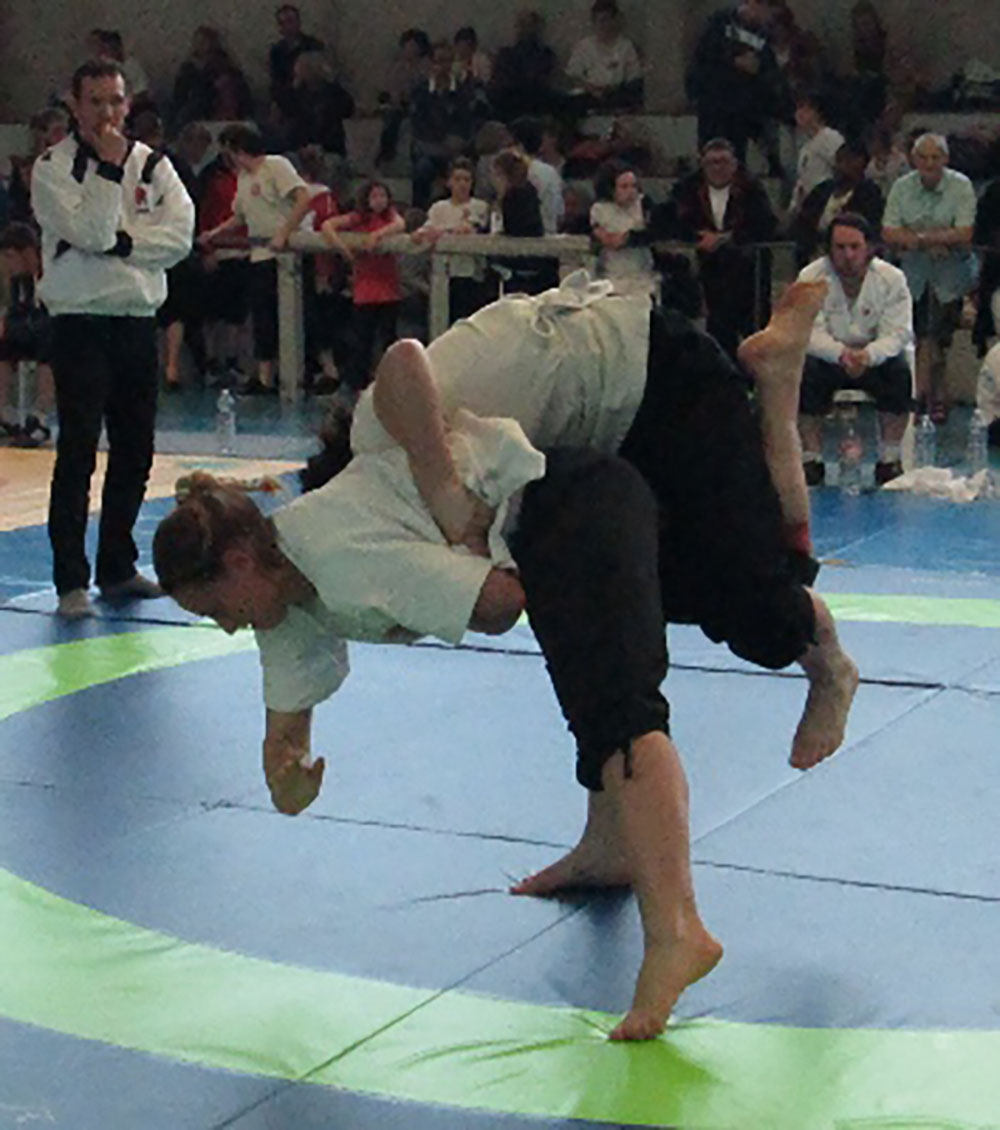 Le deuxième évènement, au printemps, est le championnat de Bretagne de Gouren. Ces deux compétitions sont l’équivalent des championnats de France (Masculins et Féminines).